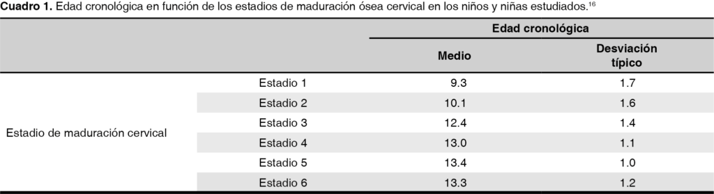 Para realizar un tratamiento de ortopedia maxilar resulta esencial poder determinar el pico de crecimiento con el fin de establecer un diagnóstico y poder aplicar un tratamiento adecuado, para lo cual es necesario implementar indicadores biológicos que permitan ubicar estadios de maduración del niño en crecimiento.1 Se han utilizado diversos métodos para evaluar los indicadores de maduración esquelética; estos métodos relacionan la maduración ósea con factores como la edad cronológica (EC), talla, calcificación de los dientes permanentes, menarquia, aparición de los caracteres sexuales secundarios, grupo étnico, sexo, medio ambiente, herencia, etc.2 A fin de determinar el pico de crecimiento se ha demostrado la confiabilidad de las radiografías carpales, así como las radiografías laterales de cráneo. Existen otras propuestas para identificar el grado de maduración de los individuos como la edad dental (ED); sin embargo, se ha demostrado poca correlación entre la erupción dentaria y los picos de crecimiento.3