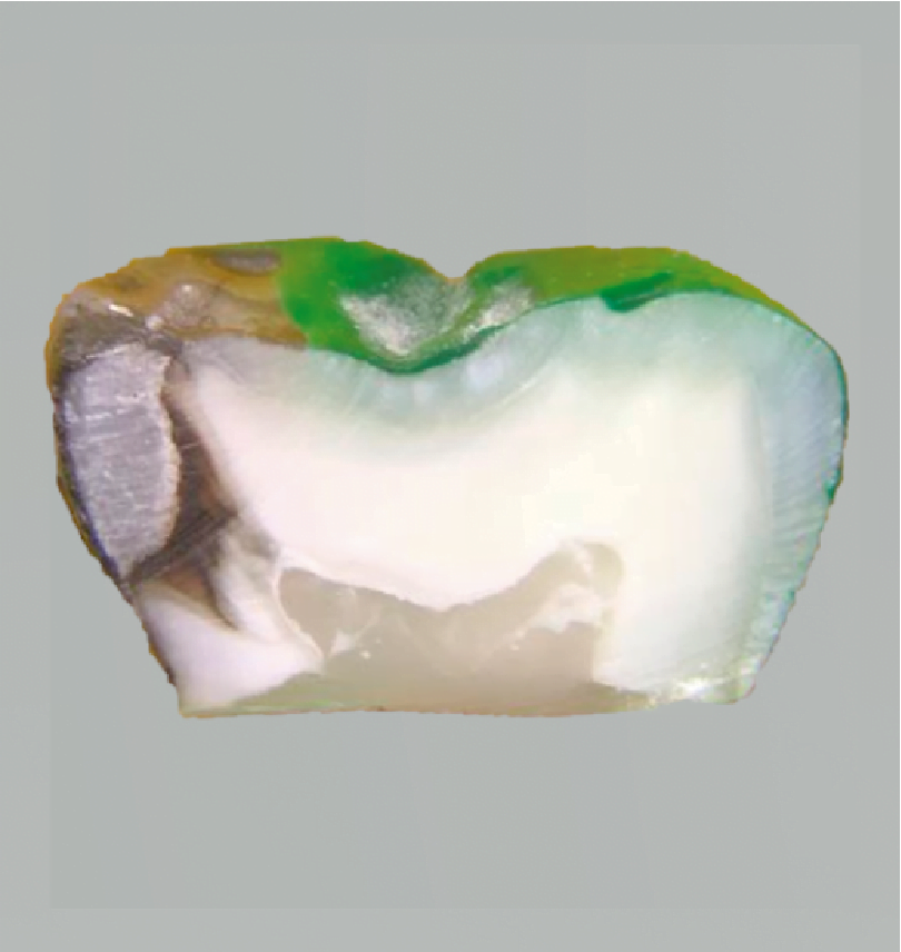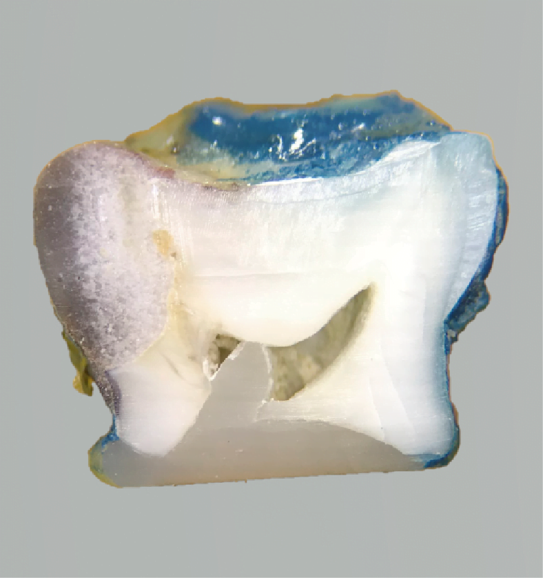 Figura 3. Imagen de un espécimen con puntaje de microfiltración = 4 (grupo 2, Papacárie + Ketac Molar Easymix®).